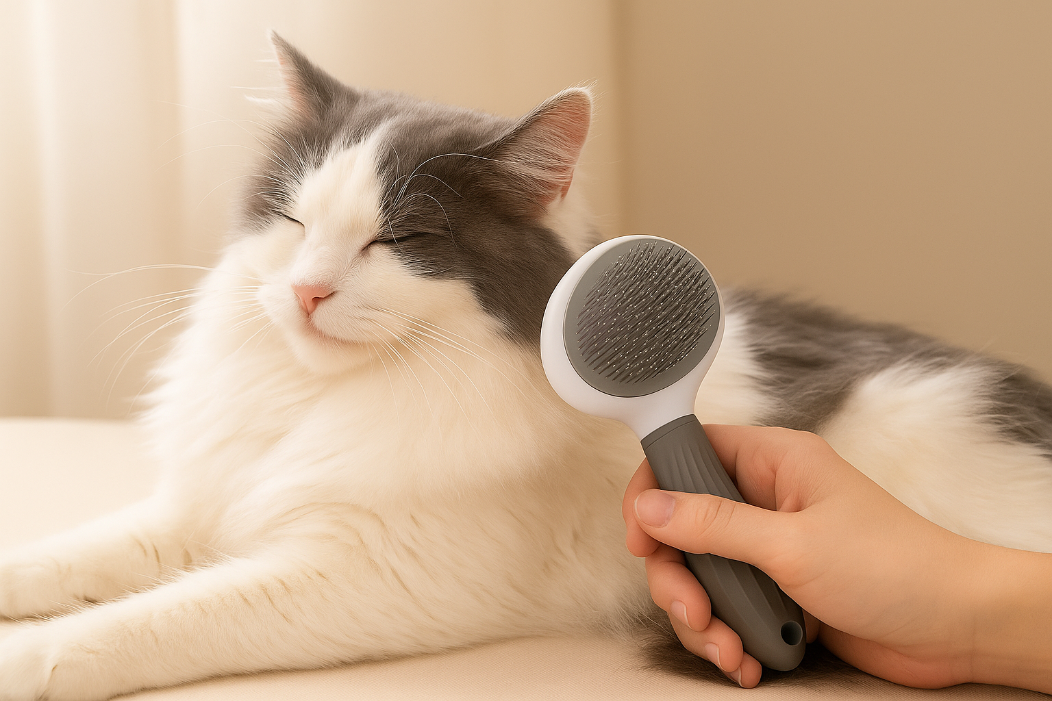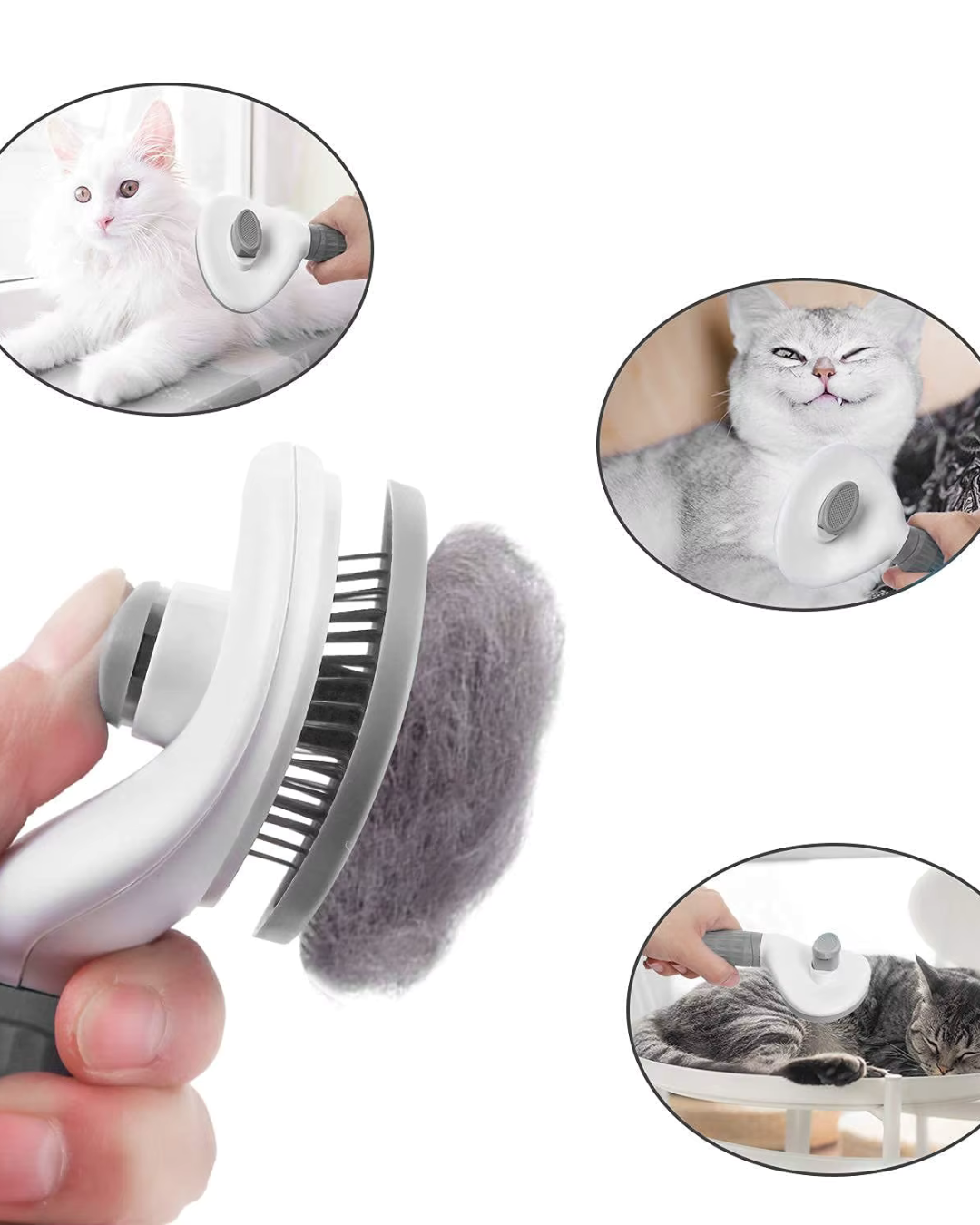 Tryck på knappen så trycks piggarna in och pälsen lossnar i ett svep. Du slipper plocka hårstrån för hand – smidigare blir det inte!